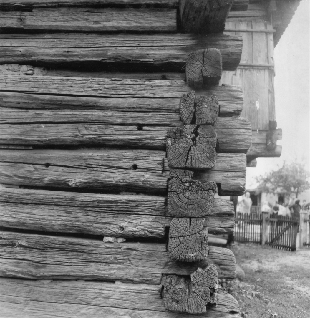 Crnac (Sisak) - Detalj konstrukcije „hrvatskog veza“ načina kojim su spojene tesane planjke katnice kbr. 136 u vlasništvu Kate Selanec