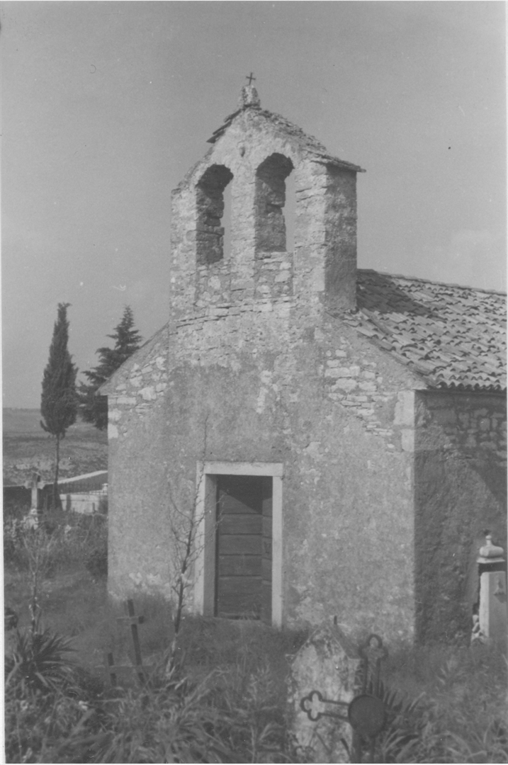 Srbani (Brtonigla), kapela sv. Dionizija (Mihovila), na groblju, vanjština: pogled na glavno pročelje sa zvonikom na preslicu