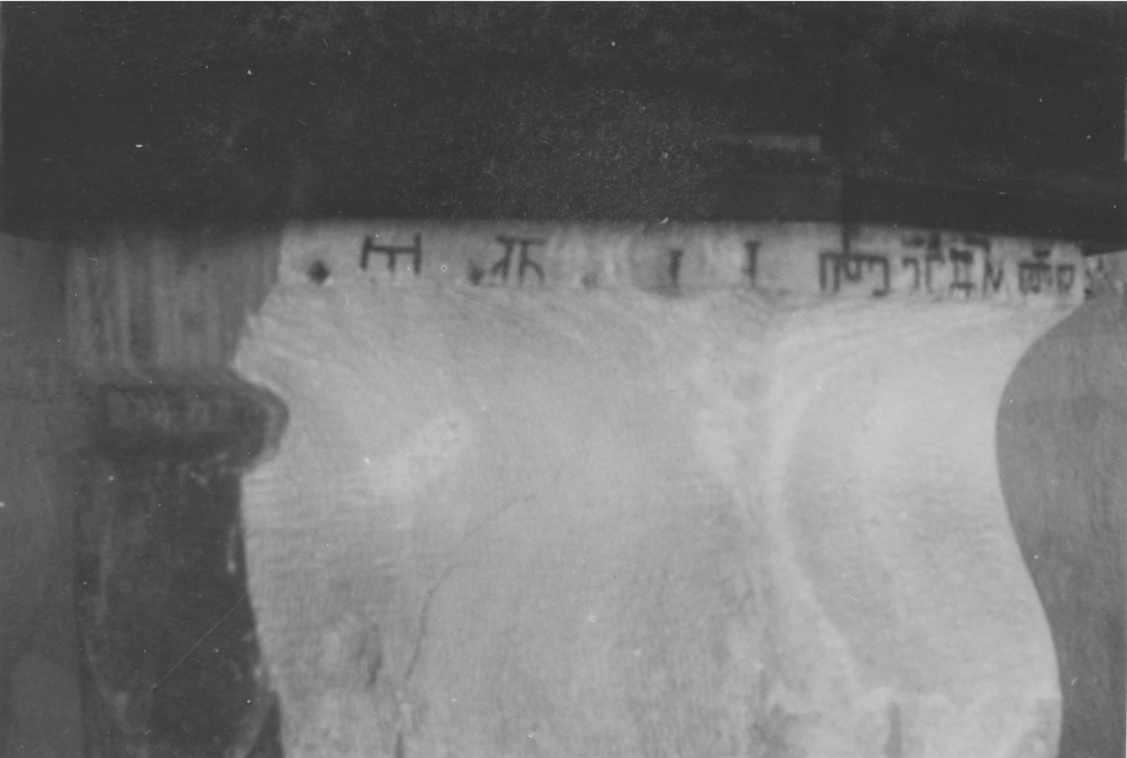 Šterna (Grožnjan), župna crkva sv. Mihovila arkanđela, detalj unutrašnjosti: dio krstionice s dijelom glagoljskog natpisa na gornjem rubu
